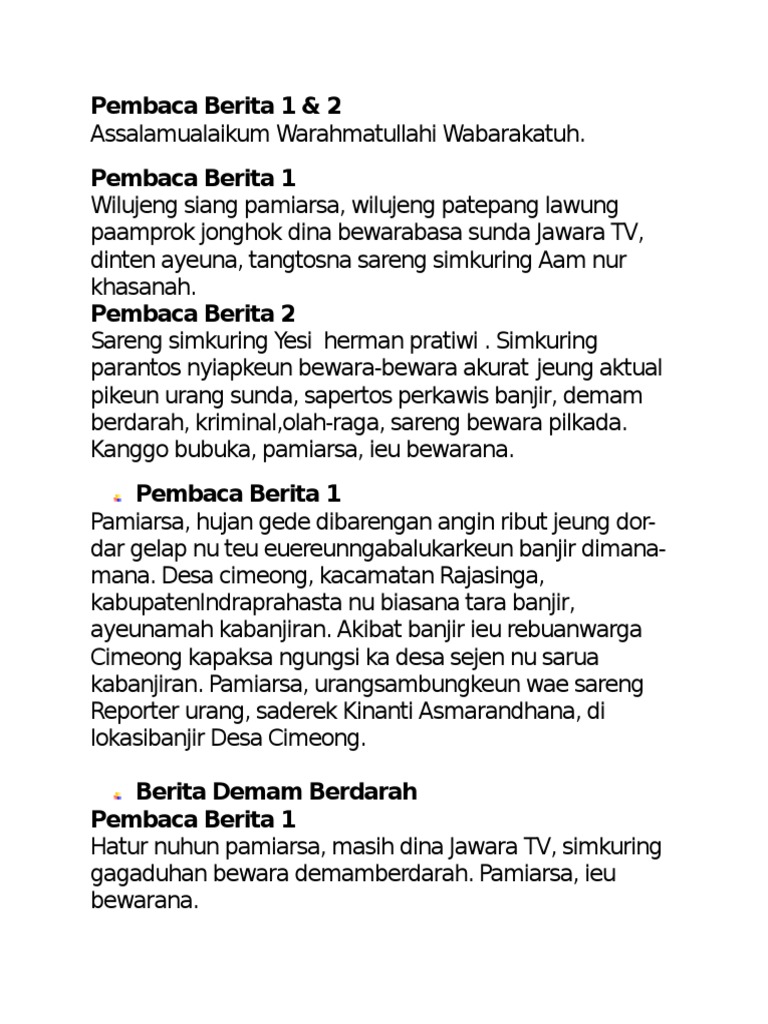Contoh berita bahasa sunda tentang bencana alam pamiarsa sadayana nagara indonesia nuju kenging musibah saentosna ntb ayeuna kota palu anu kenging musibah gempa. Bencana alam yang terjadi di beberapa daerah indonesia belakangan ini seperti musibah alam tsunami di pandeglang dan serang banten, tentu saja menggoreskan duka yang amat mendalam. Latihan soal dan jawaban us bahasa sunda sd 2020 pendidikan kewarganegaraan pendidikan kewarganegaraan. Berita bahasa sunda 2019 gue viral. Komentar dinonaktifkan pada contoh warta sunda pendidikan.